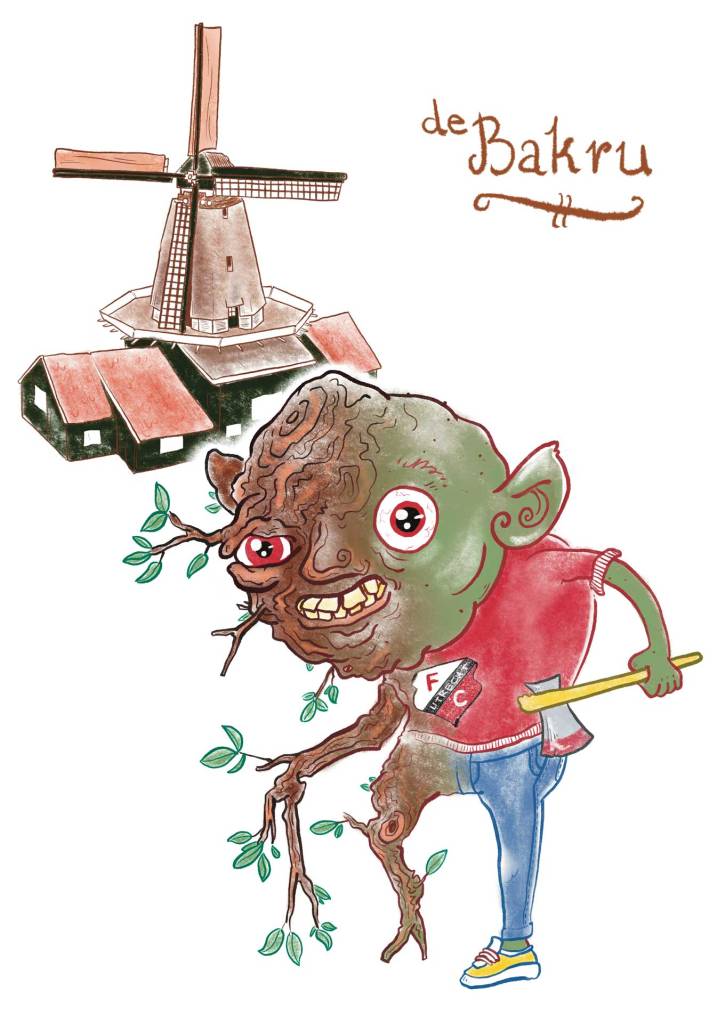 Ik koos 3 monsters die met migranten meegekomen zijn naar Nederland. Onder andere de Bakru (of bakroe) uit Surinaamse volksverhalen. Het is een soort kabouter die half van vlees, half van hout gemaakt is. Hij woont bij houtzaagmolen De Ster.