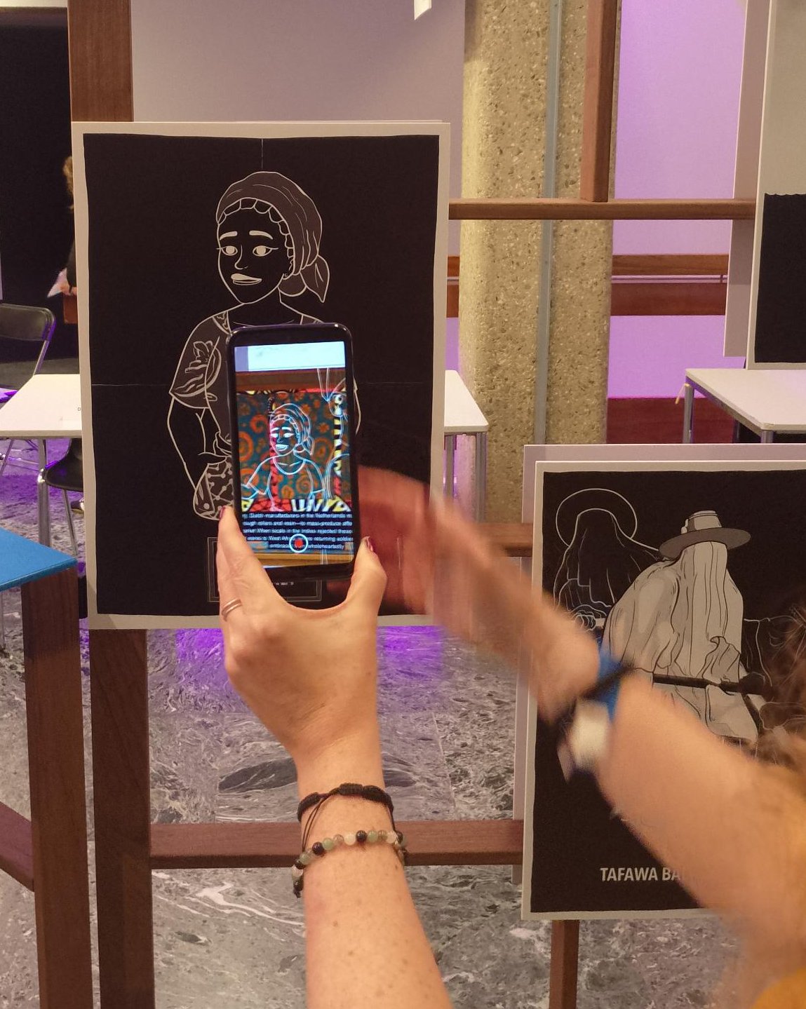 The posters connect to digital experiences via augmented reality (the free Artivive app), so you can visit the exhibition and watch the animations on your phone. I created the posters inspired by the different animations and developed the AR-interactions.