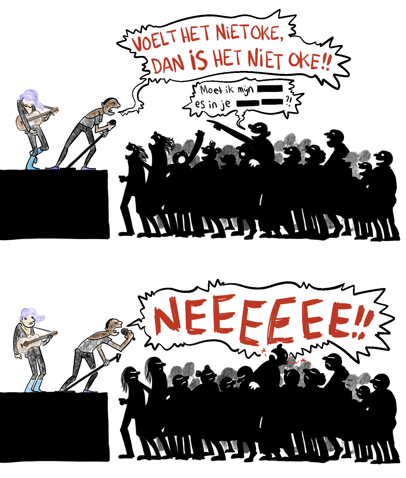 Voor OneWorld deed ik onderzoek naar seksuele intimidatie op de werkvloer. Mijn bevindingen vatte ik samen in een beeldverhaal, hier volledig te lezen.